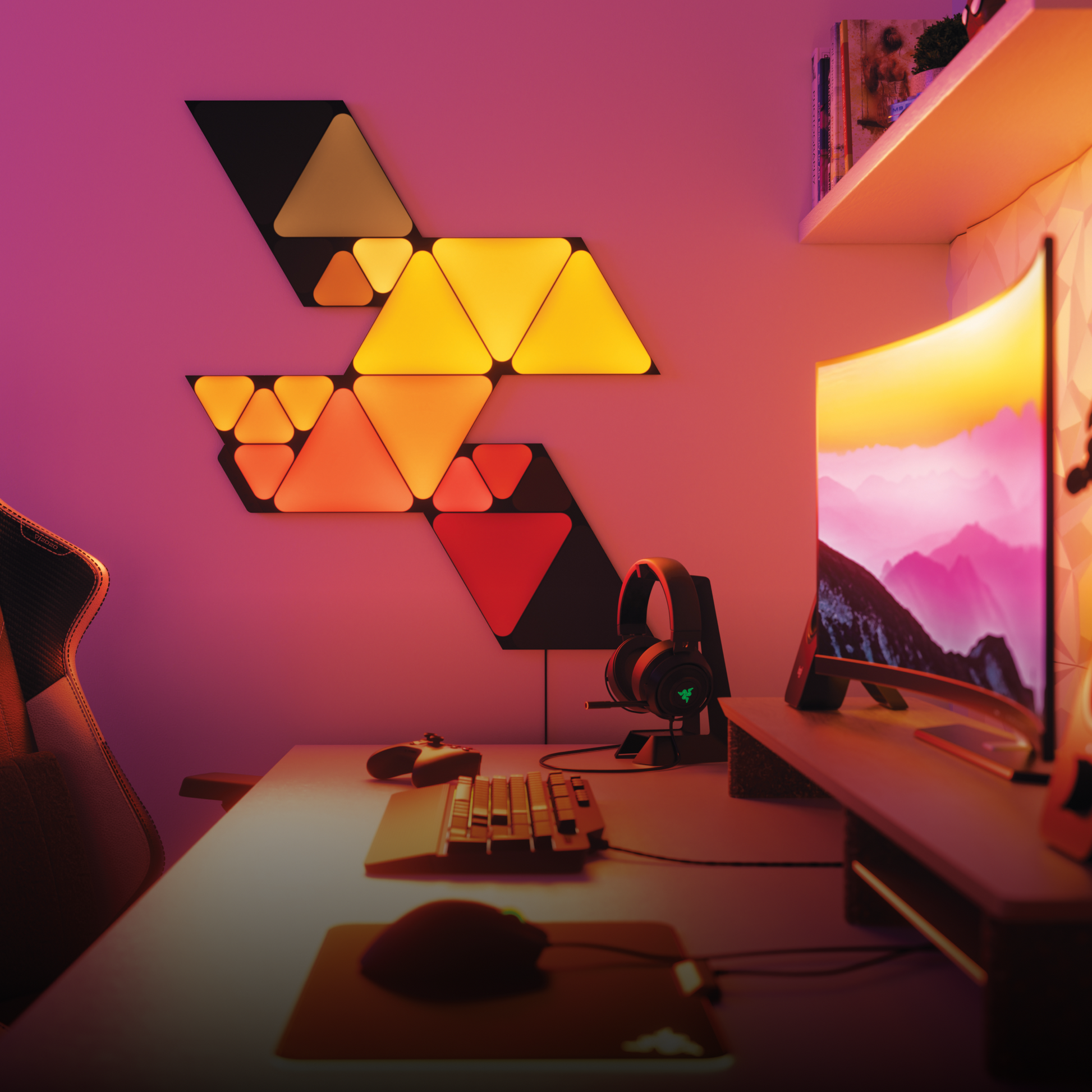 Grow your Shapes design with this Limited Edition Ultra Black Mini Triangles Expansion Pack. Enjoy the 360º sleek black finish while it's off and the vibrant high-contrast RGB lighting animations when on!